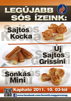 Od wiosny kontynuujemy intensywną politykę promocyjną. Prawie w każdym miesiącu mieliśmy 2-3- nowe produkty, które wprowadziliśmy na rynek z 20% rabatem. W zakładzie w Kiskunfelegyhaza została zrealizowana, przekraczająca 1 miliard forint inwestycja prywatnej mocy, którą 7. lipca Minister Rozwoju Obszarów Wiejskich dr. Fazekas Sándor zainaugurował. dr. Fazekas Sándor inwestycję tę ocenił jako największą przemysłu żywnościowego na Węgrzech. Podkreślił, że firma inwestując tak rozszerza produkcję, że tym samym urozmaica wybór, i jednocześnie podnosi jakość produktów. Wśród elementów sukcesu razem występuje wybitna wiedza fachowa ściśle powiązana z jakościowymi produktami i w połączeniu szacunkiem wobec klientów, podkreślił minister. Inwestycja utworzyła podstawę zaplecza technologii, że z sukcesem zostały zakończone dwuletnie badania rozwojowe i dzięki temu klienci lubiący produkty Fornetti spotkali się z czterema nowymi rodzinami produktów firmy: chlebem, wyrabianym na zakwasie o szczególnym smaku, nie zawierającym substancji dodatkowych ani konserwantów, produkty z warzywami o charakterze chleba, w których mąkę w 30-40%-ach zastępują świeże warzywa, odpowiednio zaspokajające wymagania klientów dbających o zdrowie produkty z zawartością różnych nasion (wielonasienne, z kukurydzą, z orkiszem, z żytem, z ziemniakami, itp.), oraz zgodnie z możliwościami jakie daje charakter i technologia w niektórych tradycyjnych produktach Fornetti pojawia się unikalna żywa flora tokajska.